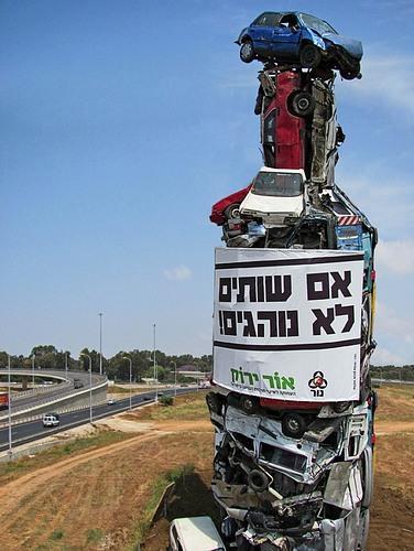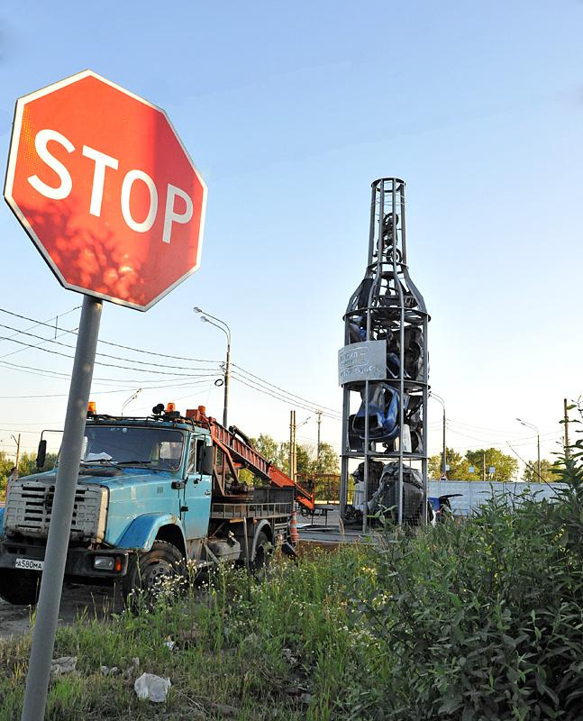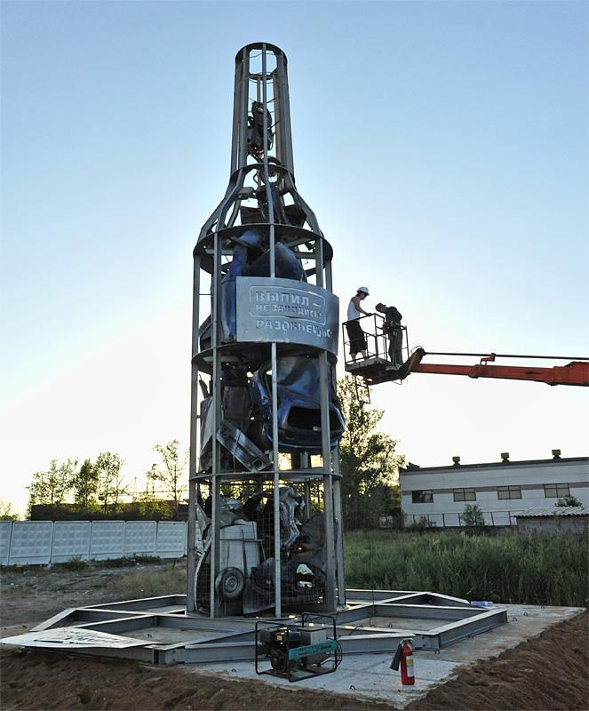 И докато у нас несъобразената скорост се сочи като главна причина за пътнотранспортните произшествия, в Русия явно това е алкохолът. За да променят към по-добро цифрите на черната статистика, руските управници поставиха огромно шише, пълно с катастрофирали превозни средства. Съоръжението е високо 12 метра, тежи 8 тона и се намира на магистрала в близост до Москва.