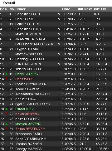 Петер Солберг, който също е зад волана на Citroen, но с частен клуб, успя да финишира трети на 6,8 секунди след Сордо. Четвърти отново се нареди автомобил C4 WRC, управляван от Себастиан Ожие.