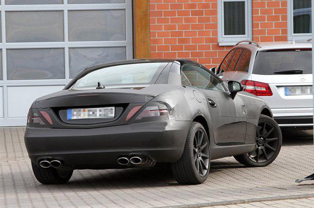 Лепенката веднага зад предното колело най-вероятно прикрива нов отвор за въздух, което показва принадлежността на този прототип към AMG. По-големите джанти и спирачни механизми, по-агресивните отвори за въздух на предния спойлер и четворния накрайник на ауспуха също говорят за един AMG вариант на новия SLK.