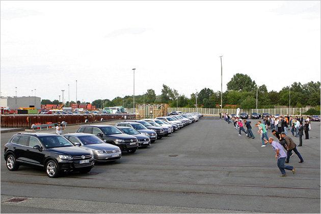 Предаването на новите автомобили е точно преди старта на Le Mans: За да го отбележат, футболистите спринтират едновременно към своите автомобили. Действието се развива на пристанище Нойщад Бремен.