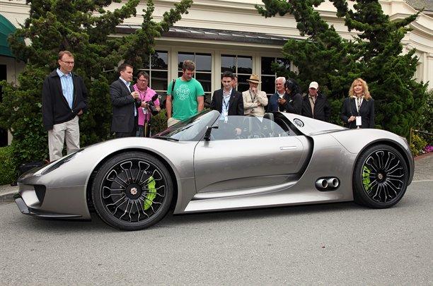 В Pebble Beach беше показан 918 Spyder за първи път в движение. 918 е създаден на базата на Boxster и Cayman и ще се предлага в две версии – с твърд покрив и с мек покрив. В предната част на каросерията има доста алуминий, като при серийния модел ще бъде още повече.