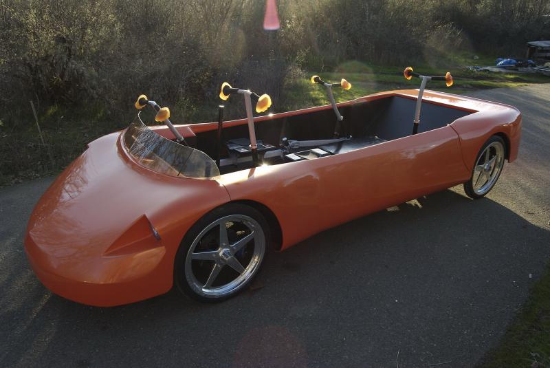 Разработена е от проф. Чарлз Гриинууд. Той се опитва да създаде автомобил задвижван от човешка сила още от 1968 година. Според него системата на педалите, каквато я познаваме от велосипеда, не е подходяща и той залага на …техниката на гребането.