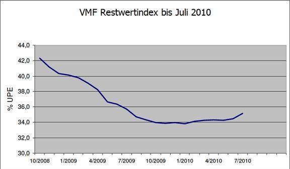 Според Михаел Фелте, шеф на борда на VMF и директор на Deutsche Leasing Fleet, пазарът все още е много далеч от постигнатото през октомври 2008 година ниво, което е било със 7% по-високо от сегашните 35%.