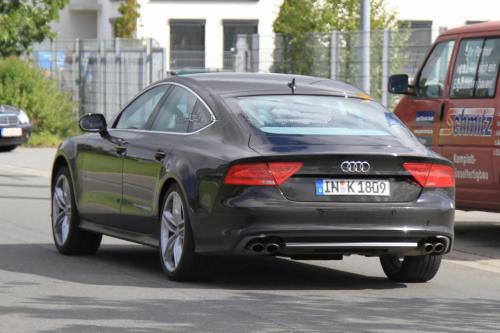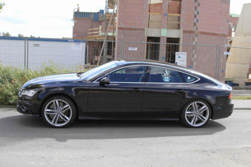 Audi S7 е с лети джанти с по пет двойни спици, като под тях се виждат доста големи спирачни дискове. Въпреки това, спирачните механизми не са толкова големи, колкото се очакваше. Отзад се виждат 4 накрайника на ауспуха, разположени в две двойки под всяка от задните светлини, разделени от хромирана линия.