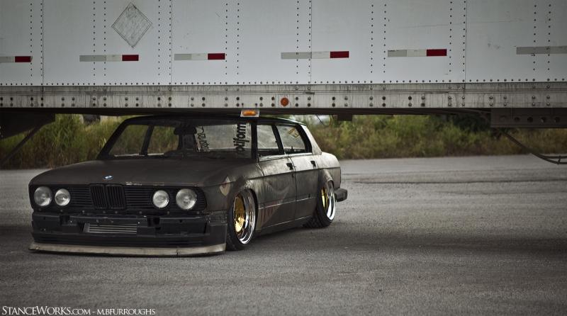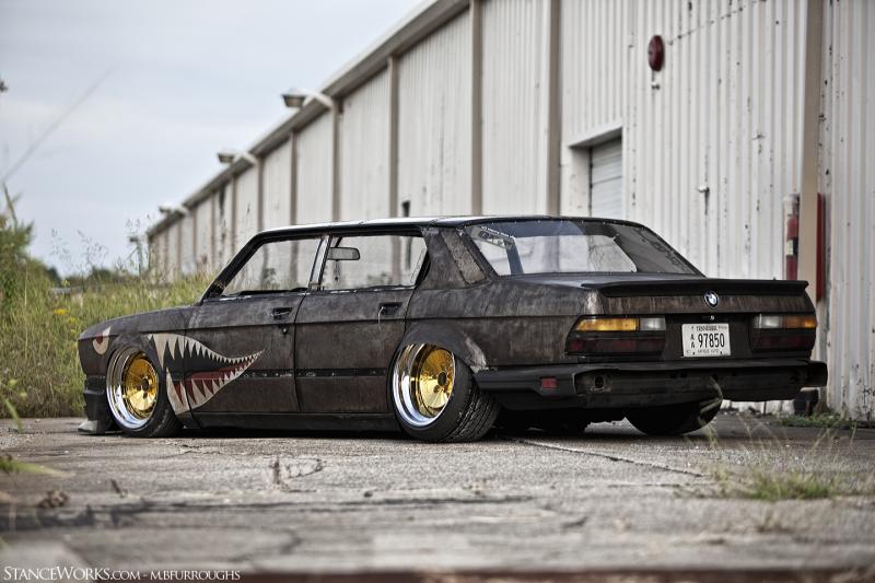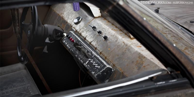 По думите на StanceWorks собственикът на колата Mike Burroughs е искал точно това - уникална, различна кола, която да бъде забелязвана навсякъде. Резултатът - таванът на возилото е свален с близо 13 см, а окачването с около 10 см. Отвътре и отвън е интегрирана така наречената "ръждива тема", а за контраст са добавени джанти Ronal Racing с 24-каратово златно покритие.