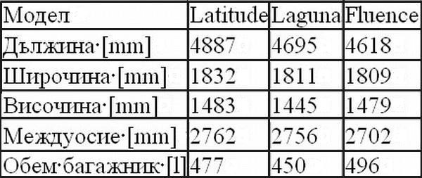 За да добиете по-добра представа за размерите на Renault Latitude, ви предлагаме сравнение с два други модела на фирмата – Laguna и Fluence.