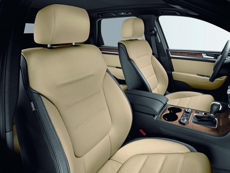 Централната част от седалките е с така наречената от VW „Cool Leather", за която производителите твърдят, че намалява температурата на повърхността, когато e нагрявана от пряка слънчева светлина. Предните кожени седалки са със система за подгряване и адаптиране, като имат 12 настройки. Облегалките за главата също се настройват по височина и дължина.