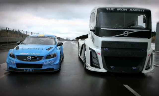Още в началото на месеца компанията Volvo Trukcs анонсира надпревара. В нея концептуален модел Volvo Iron Knight, който по-рано тази есен подобри световния рекорд за скорост сред камионите, се изправя срещу седана Volvo S60, подготвен от тунинг-ателието Poelstar за световния пистов шампионат за туристически автомобили (WTCC).