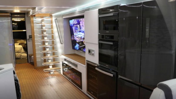 Наречен Elysium, този дом на колела е толкова далече от обикновените кемпери, колкото Елисейският дворец - от рибарските бунгала. Той има не само луксозна спалня, баня с вибромасаж и подвижно джакузи, но дори и свой собствен хеликоптер - ако случайно пътищата се окажат прекалено задръстени.