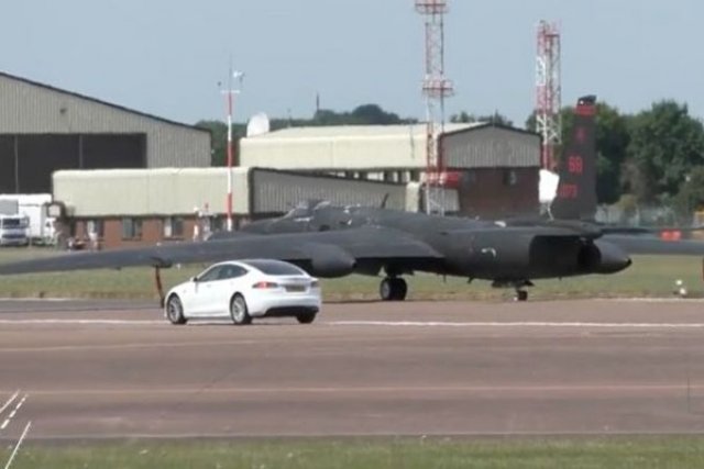 Появата на един чисто бял Tesla Model S на пистата на британското военно летище „Феърфорд” се оказа изненада, която обаче стана още по-голяма, когато се оказа, че електрическият седан всъщност е част от екипа, работещ с един от най-известните шпионски самолети в света – U-2.