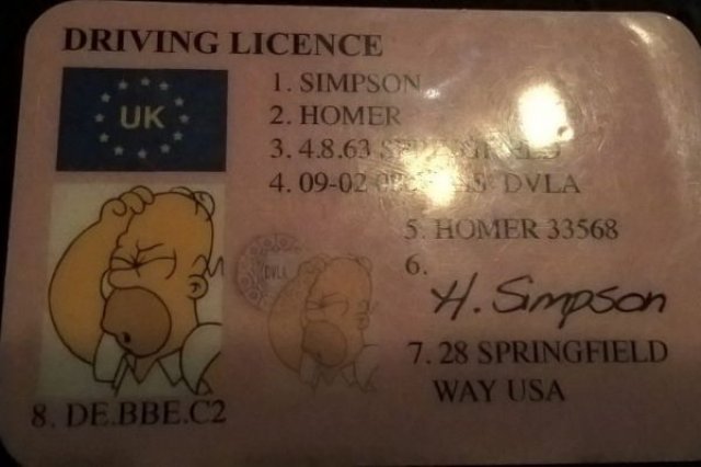 Потребители на социалната мрежа отбелязаха, че водачът на въпросния автомобил дори не си направил труда да измайстори "по-достоверна" книжка на Хоумър. Като домашен адрес в документа е посочен "Спрингфийлд Уей 28, САЩ". "Фалшификат. Хоумър живее на улица Евъргрийн Терас 742", отбеляза потребителят Марк Чъндър.