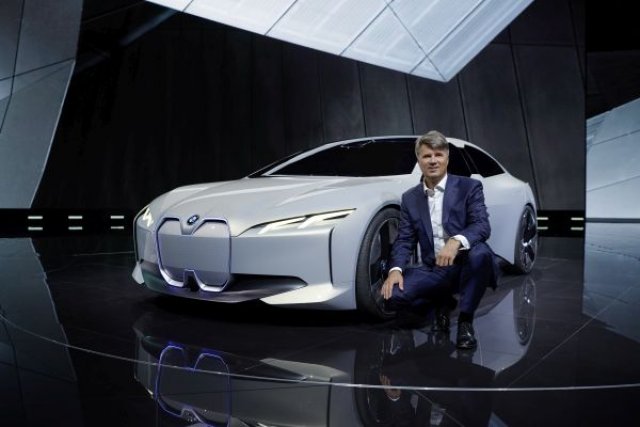 Харалд Крюгер с прототипа на бъдещото електрическо BMW i4. Снимка: BMW Group