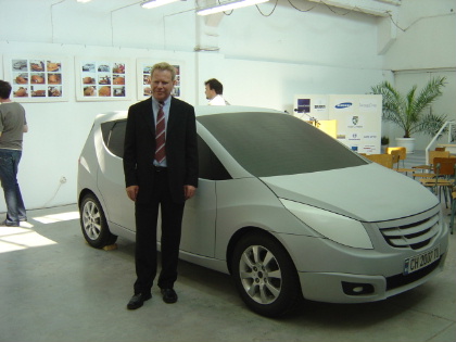 Володя Димитров, Даниел Чавдаров и Иван Иванов (от ляво на дясно), автори на проекта.Аутомедиапро: Какви шансове имат създателите на „Автомобил, произведен в България" да заработят при вас?Пфайфер: В моето студио в Сенделфинген имам представители на двайсет различни националности, което направо покрива почти целия световен спектър. Нищо чудно в скоро време да имаме и някой от България. Защо не, нали точно за това сме тук. Сега полагаме основата.