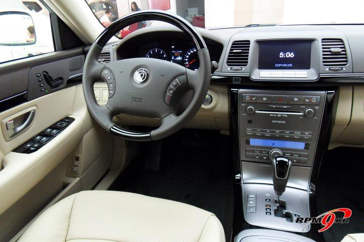 Интериорът на  Kia Opirus Premium (както е официалното название на колата в Корея) също е променен, като се е появил нов цветен TFT-LCD екран на таблото.