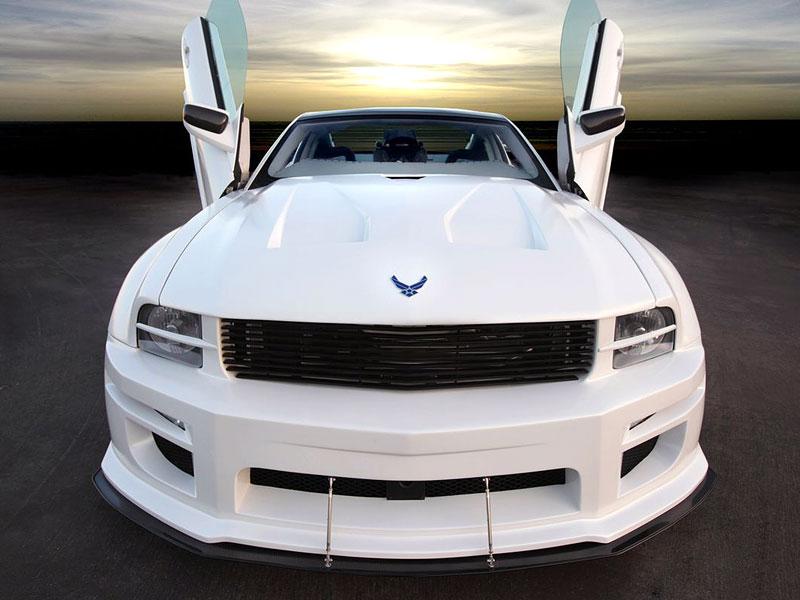Mustang X-1 изглежда като кръстоска между изтребител и автомобил. Той е създаден от конструкторите на ВВС с помощта на фирмата Galpin Auto Sports. Белият Mustang е със силно променена каросерия с агресивни брони, силно издути калници, нови прагове и капак на двигателя. Летите джанти са в черен цвят.