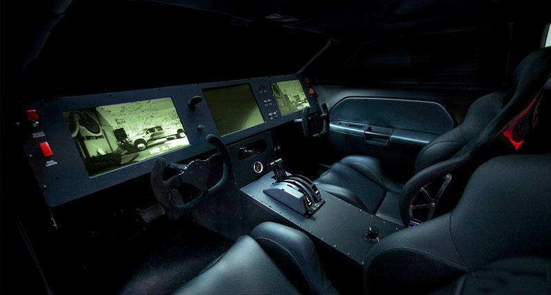 Матово черният Dodge е с променена каросерия, чиито лак може да „поглъща” вълните на радара и автомобилът да остане „невидим”. Променена е и радиаторната решетка, а на покрива има монтирана камера.