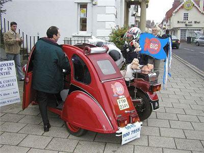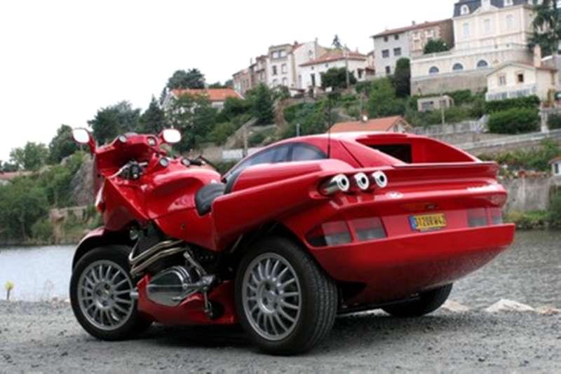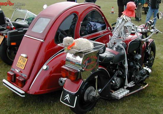 Творецът създал това уникално возило е запазил и четирите колела на френската кола. Така се е получил странно изглеждащ мотоциклет с шест гуми или може би по-скоро умален Citroen 2CV, който разполага с цял мотоциклет.