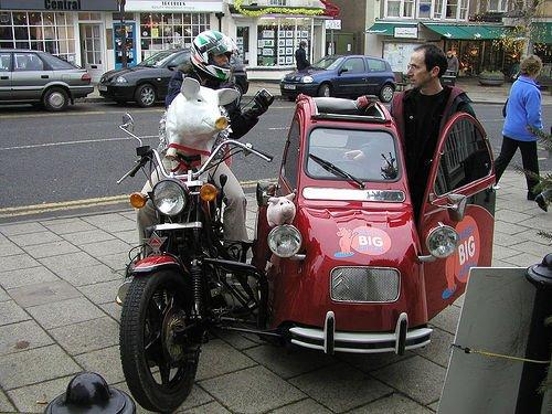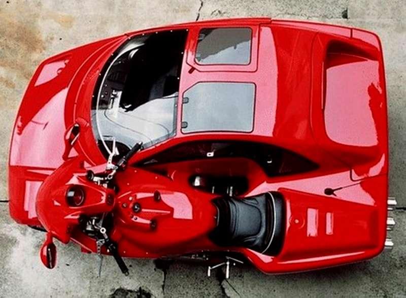 Половината от превозното средство представлява мотоциклет Laverda, а останалата част е съвкупност от Volkswagen GTI, Audi 80 и Citroen Xantia.