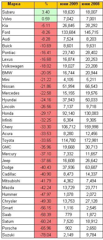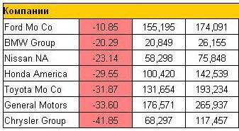 Добре са се представили и Ford Motor Company в сравнение с другите американски компании. Ford Mo Co реализират спад в продажбите със само 10.85%, в сравнение с GM и Chrysler, при които числата достигат, съответно 33.6 и 41.85%.