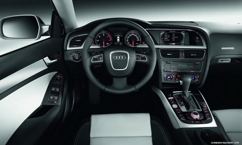 В интериора Audi вече налага различим стил, с характерна вътрешна част на вратите и на таблото. Като цяло разположението на инструментите не се различава съществено от това при A4 и останалите модели от семейство A5.