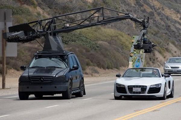В интернет се появиха снимки на предстоящото да влезе в серийно производство Audi R8 V10 Spider, участващо във филм.