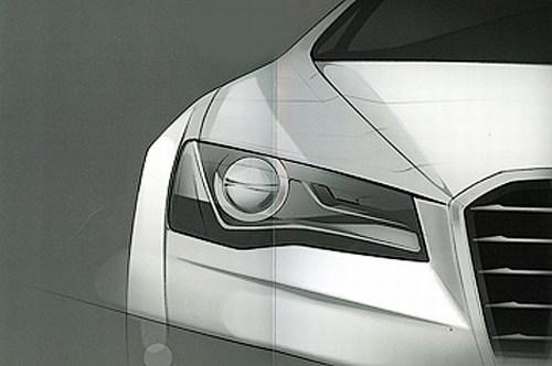 Има и илюстрация на част от предницата на новото А8 с един фар, части от капака на двигателя и новата радиаторна решетка, които са в стила на концепцията Sportback.