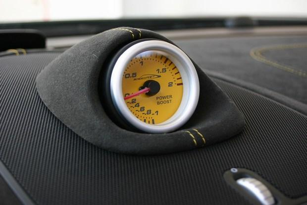 Най-отгоре на централната конзола се вижда нов циферблат - turbo-boost. Инструментите са с жълт циферблат.