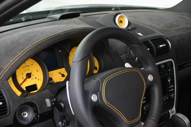 Много съществени са и промените в интериора на Cayenne Diesel. Таблото, волана, облегалката за ръката между двете предни седалки и панелите на вратите са от велур обшит с ярко жълти конци.