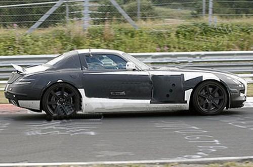 От шпионските снимки на маскирания SLS личи, че колата е във финалната фаза от разработката. На Нюрбургринг се провеждат тестовете за скорост на автомобила с врати тип „крило на чайка”. Този стил е наследен още от култовия Mercedes 300SL.