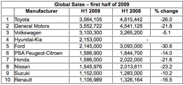 Корейците се нареждат на четвъртото место по продажби, през първата половина на 2009 година с 2 153 000 продадени нови автомобили, а веднага след тях са Ford с 2 145 000 броя.