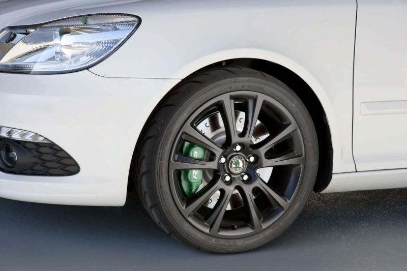 Колата е оборудвана с нови спирачни механизми с дискове имащи размер 355 мм отпред и 310 мм отзад. Octavia RS-P e с гуми Yokohama ADVAN. Разбира се променено е и окачването, което е с нови регулируеми амортисьори.