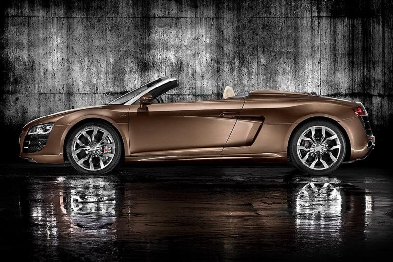 Като малка козметична разлика в сравнение с купето, при R8 Spider виждаме различен капак на двигателя с нови отвори за въздух. Липсват и страничните панели, наречени „sideblades”.