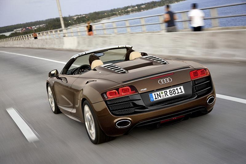Голямата изненада е, че въпреки предварителните коментари, R8 Spider не е с подвижен покрив тип targa, а е с класически сгъваем покрив, който се скрива зад седалките на пътниците.
