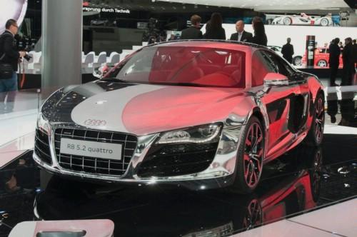 Хромът по джантите в днешно време е нещо обичайно и дори задължително за един горещ автомобил. В Audi обаче явно считат, че хромираните колела не са достатъчни и дори излишни, особено когато вместо с обикновена боя колата е покрита с хром.