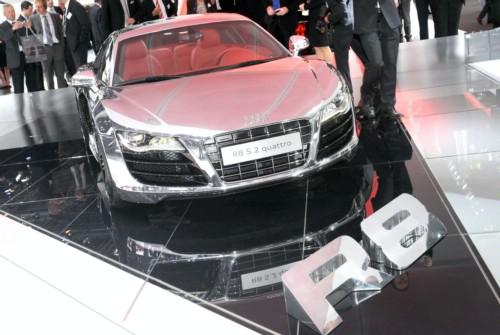 Стана ясно още, че автомобилът е с леко наднормено тегло, благодарение на многото хром по него. Така че, ако търсите динамичен автомобил с перфектно пътно поведение, по-добре се спрете на познатата версия на R8 5.2 FSI quattro.