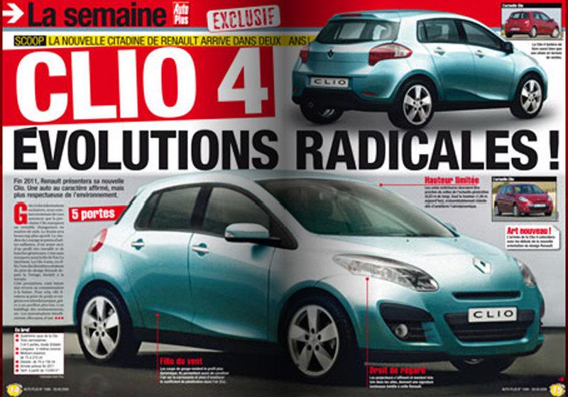 Компютърните образи на бъдещото Clio модел 2011 показват, че развитието на дизайна ще бъде по-скоро консервативно и няма да доведе до радикални промени в малкия автомобил, (въпреки заглавието на френското списание). Все пак личи, че бъдещото Clio ще има по-динамични форми и ще бъде отново достоен конкурент на Ford Fiesta и Citroen C3.