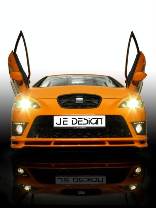 Разбира се най-впечатляваща е промяната при вратите, които са „тип крило” и се отварят нагоре. В интериора привлича кожения салон. Премиерата на JE Design Seat Leon FR ще бъде на тунинговото изложение в Есен, което се открива на 28 ноември.