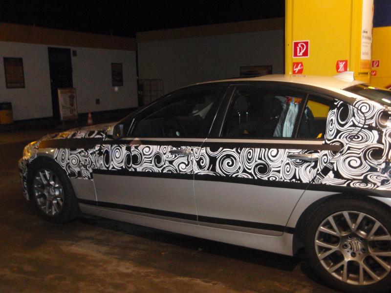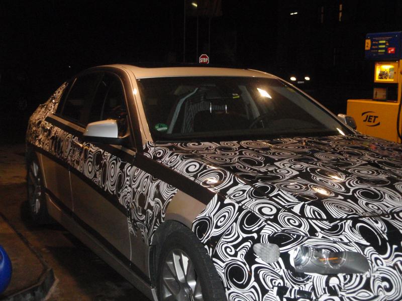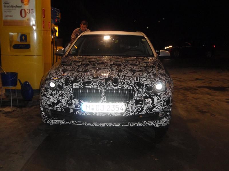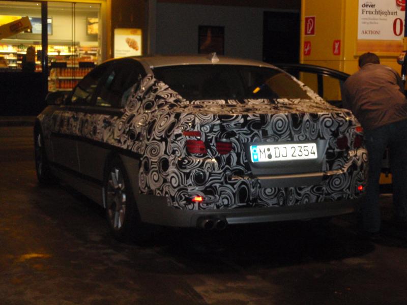 Казвам се Александър Белоев, на 19 години съм. За мен колите са хоби. От няколко години следя вашия сайт редовно (за което сме ти много благодарни бел.ред.), а ето че вчера ми се отвори възможност и да поснимам малко. Пращам ви снимки (за което също сме ти много благодарни бел.ред.) на новата петица на BMW с доста оскъден камуфлаж (разбира се има и по-голи снимки от тези). Колата е заснета в село Габлиц - Gablitz, на 10 км от Виена, докато зарежда на бензиностанция. Интериора беше изцяло облечен в камуфлаж, но това, което забелязах е, че колата притежава волана от новата седмица на BMW. Стоповете също са взети от 7-цата, а предницата е подобна на тази на BMW 5GT и BMW 7.