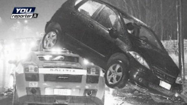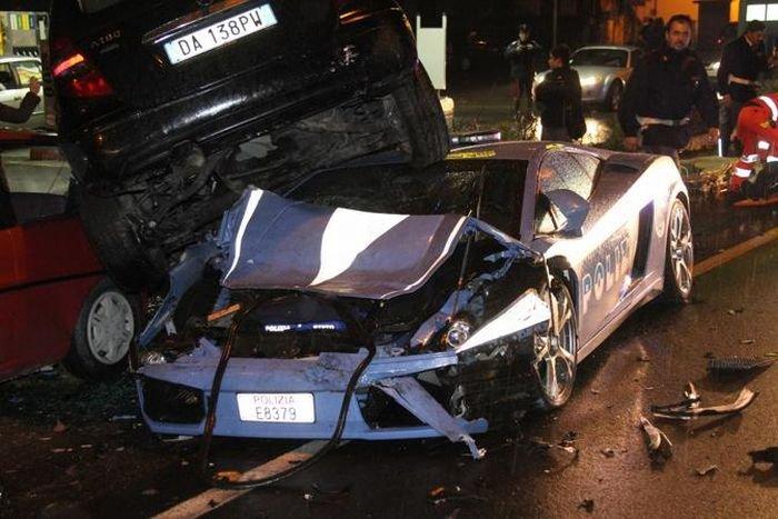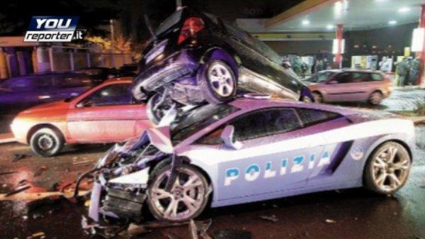 Синьото Gallardo, гордостта на италианската полиция катастрофира късно снощи в Италия.