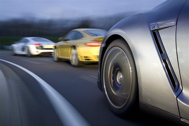 Колите са Nissan GT-R, Porsche 911 Turbo и Audi R8 V10, а пистата - Castle Combe във Великобритания.
