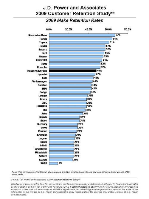 Изследване на J.D. Power показа марките с най-верни клиенти в САЩ за 2009 година.
