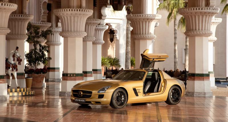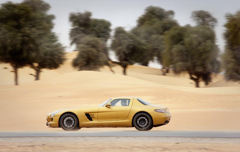 Така наречената заводска доработка е специално създадена за автомобилното изложение в Дубай и краси върховният модел на компанията - Mercedes-Benz SLS AMG.
