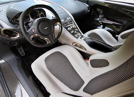One-77 е със задно предаване и шаси от карбон. Панелите на каросерията са изработени ръчно от алуминий. Двигателят е атмосферен V12 с обем 7.3 литра и мощност 700 к.с. Той се комбинира с трансмисия имаща шест предавки. От разпространена по-рано информация беше ясно, че колата ускорява от място до 100 км/час за 3.5 секунди.