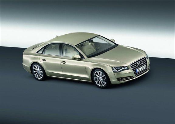 Audi A8. Новото поколение на флагмана на фирмата ще бъде на пазара от март. Цената ще започва от 60 000 евро. Изцяло нова алуминиева рама и по-спортно излъчване, но без радикални промени в сравнение с досегашния модел.