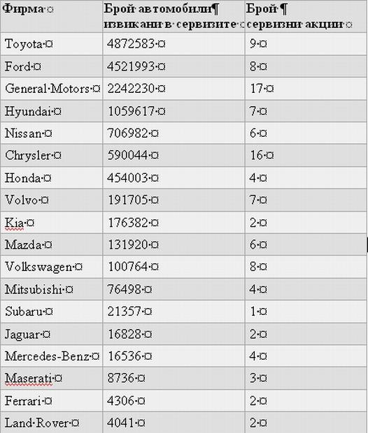 Дайте да изясним нещо - който продава по много по цял свят естествено да има повече дефекти в колите му като тойота, форд и дженеръл моторс! Както се вижда на последните места по най-малко дефекти са по скоро екзотични и скъпи коли отколкото супер продаваеми! Ако в света се продадат 1000 тойоти в един ден дали ще се продаде 1 бентли!