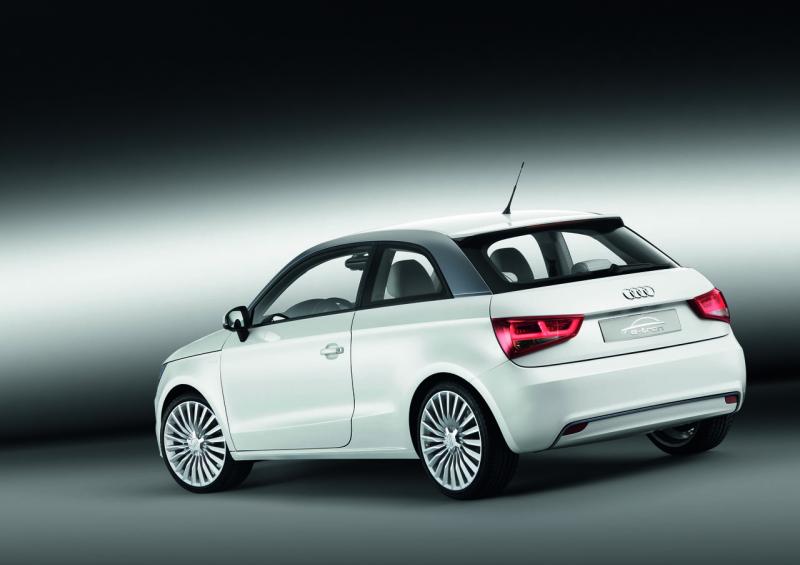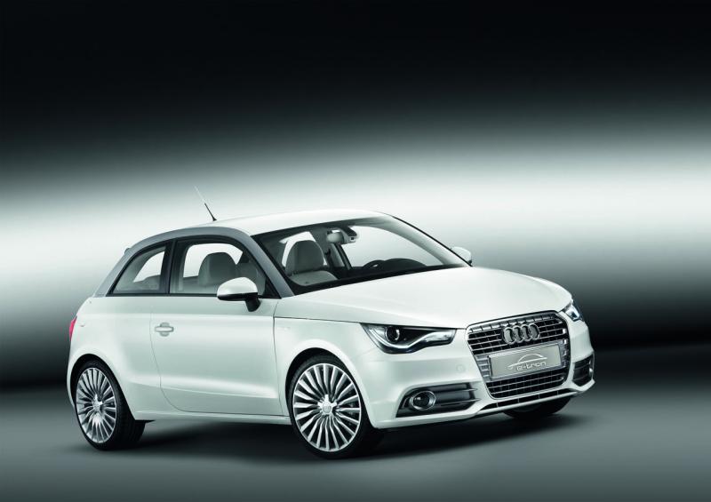Електродвигателят се захранва от Т-образна литиево-йонна батерия, тежаща 150 килограма и разположена пред задната ос на автомобила. Чрез нея, A1 e-tron е способен да измине около 50 километра, а когато акумулаторът бъде изчерпан се задейства ванкелов двигател с обем 254 куб. см. и тегло 70 кг.