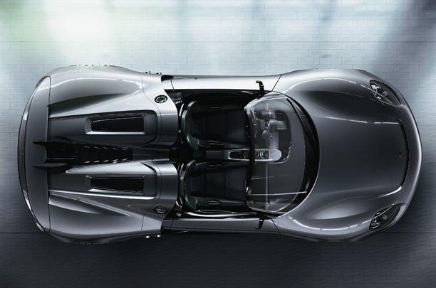 Роудстерът Porsche 918 Spyder има бензинов двигател V8 с мощност 500 к.с. и два електромотора. С общата си мощност от 718 к.с. този автомобил ще бъде по-бърз от Carrera GT на пистата в Нюрбургринг, заявиха конструкторите от Porsche.