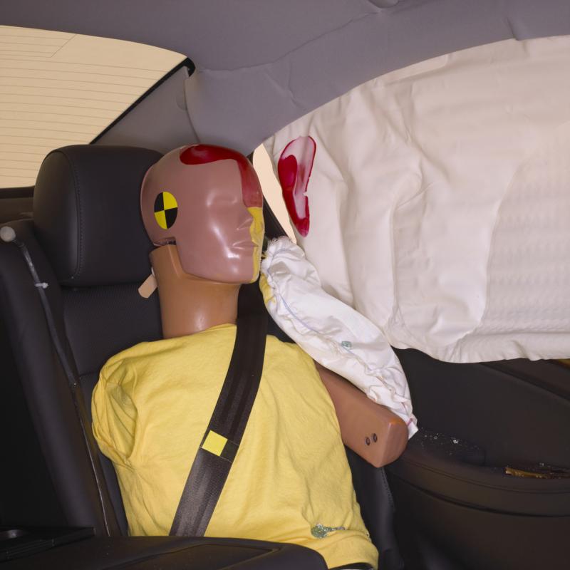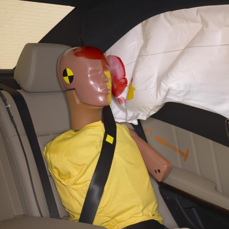 Само на мене ли ми се струва, че за пасажера отзад при хюндая има един аербег в повече? Или поне се е отворил за разлика от този при мерцедеса.При мерцедеса ръката на манекена се е отпечатала добре на вратата.