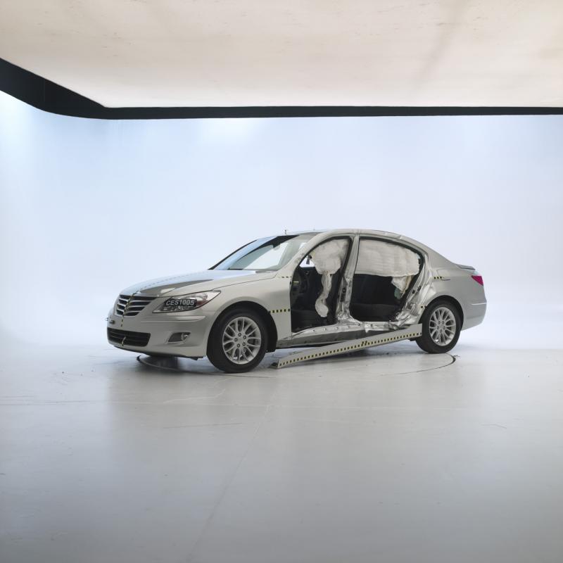 Припомняме ви, че Hyundai Genesis се появи през 2009 година. В началото на тази година обаче корейците промениха конструкцията на покрива и направиха автомобилa още по-сигурен. Именно тази обновена версия е отличена от IIHS.
