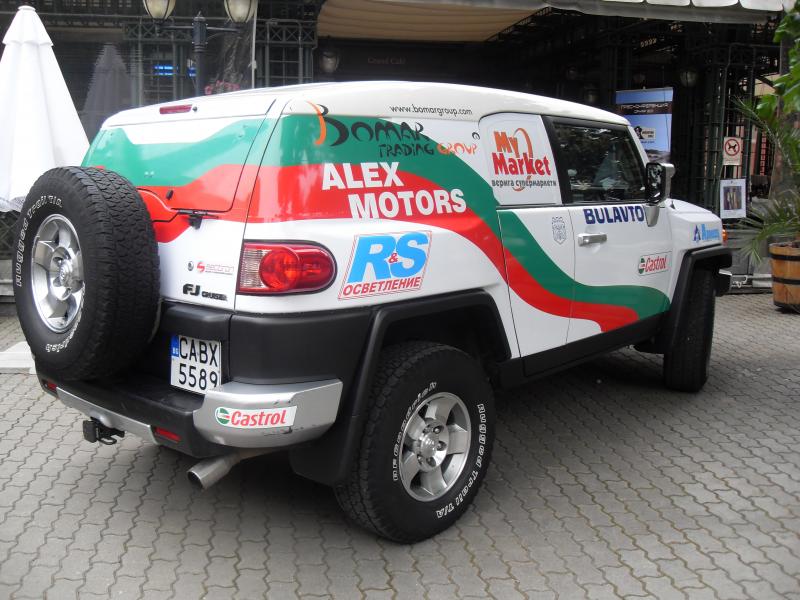 Колата също бе представена, макар и все още в цивилна форма - тепърва предстои да бъдат извършени сериозни модификации по нея. Иначе българските офроуд състезатели - инж. Александър Иванов, синът му - Александър Иванов джуниър, Златко Георгиев и Мартин Гуменов ще разчитат на Toyota FJ Cruiser. Сърцето на проходимата машина е 4-литров, V6 бензинов двигател. Максималната скорост, която развива е 200 километра в час.